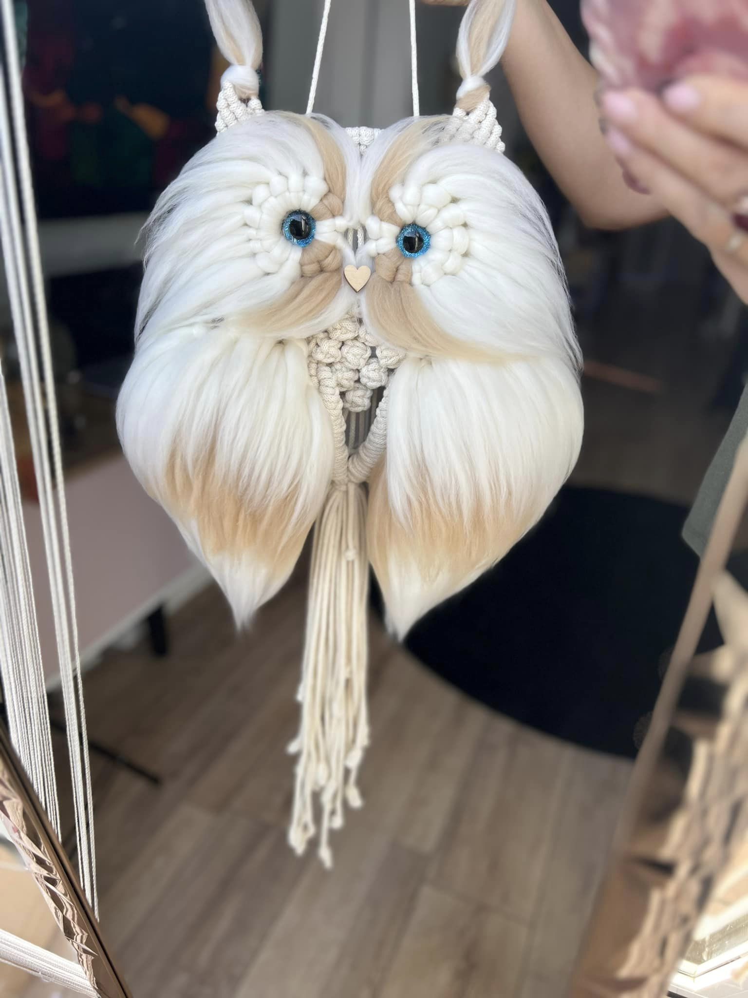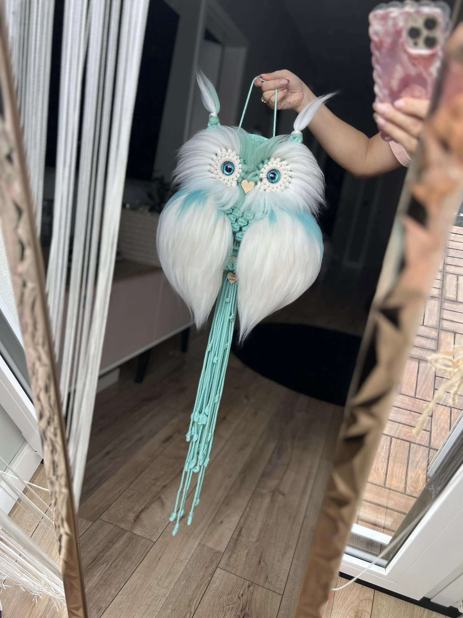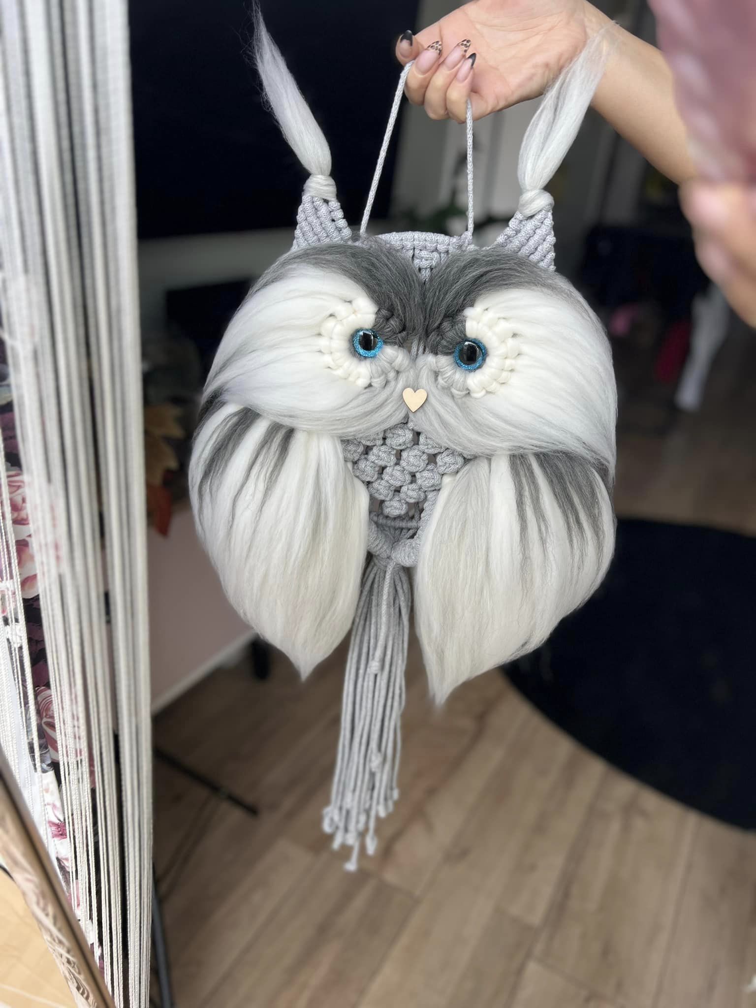 Urządzasz dziecięcy pokój albo szukasz oryginalnego, pięknego prezentu na roczek lub chrzciny,pożegnanie koleżanki z pracy, dzień nauczyciela itp.? Wybierz makramową, ręcznie wyplecioną ozdobę w kształcie sowy do powieszenia na ścianie.